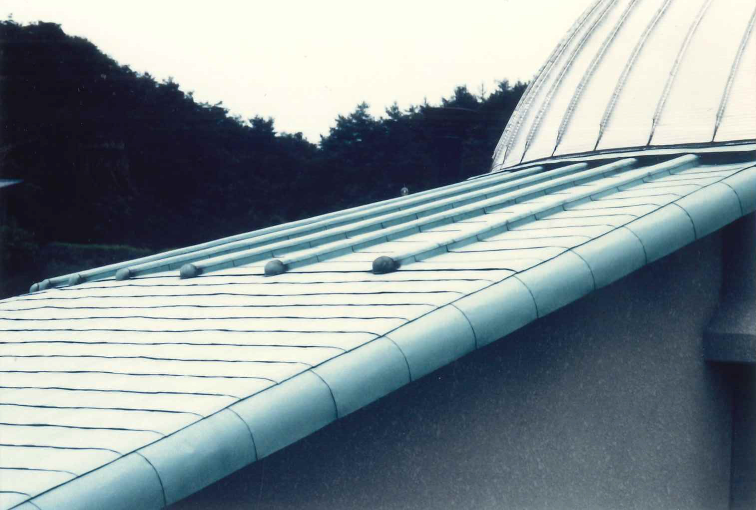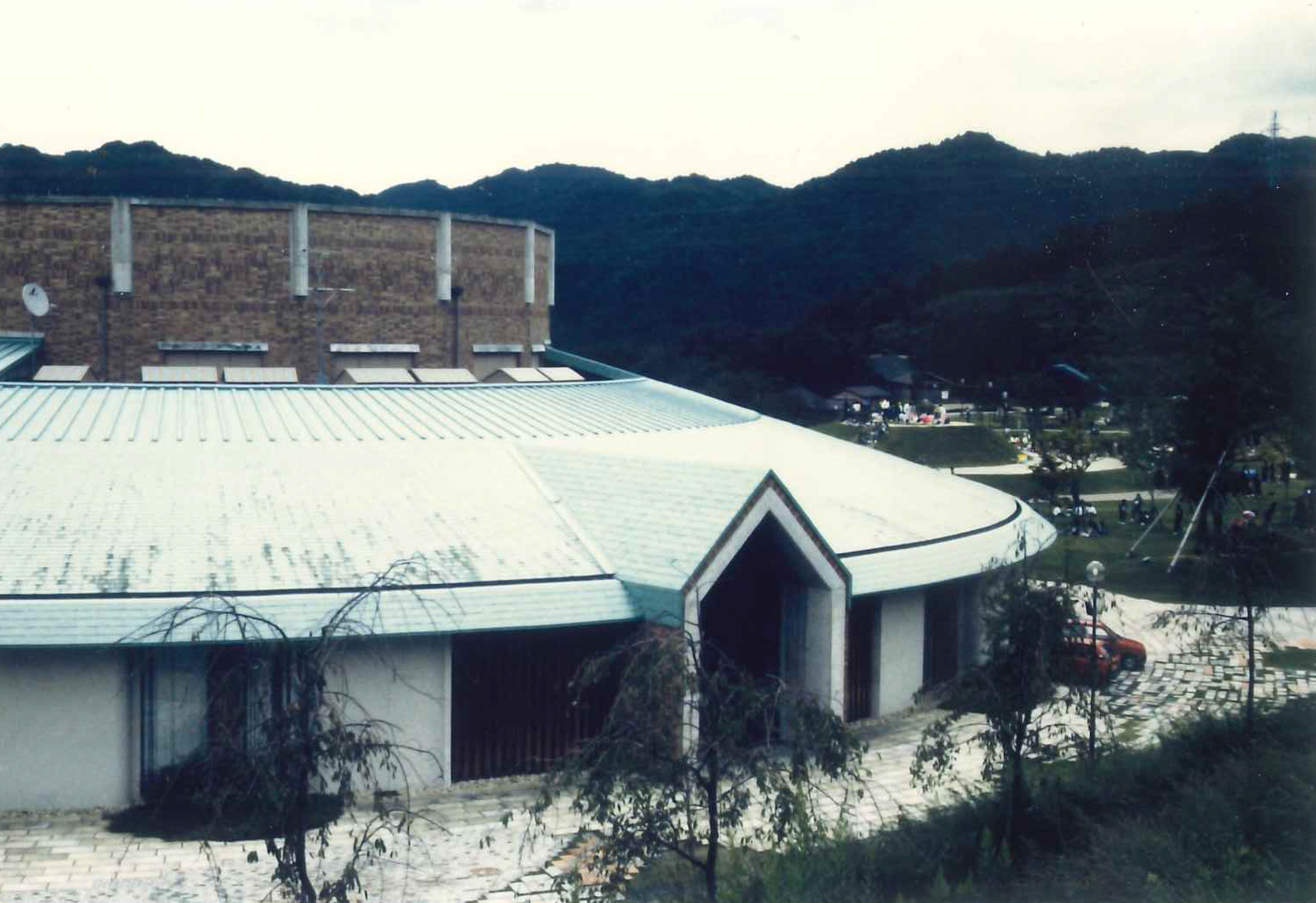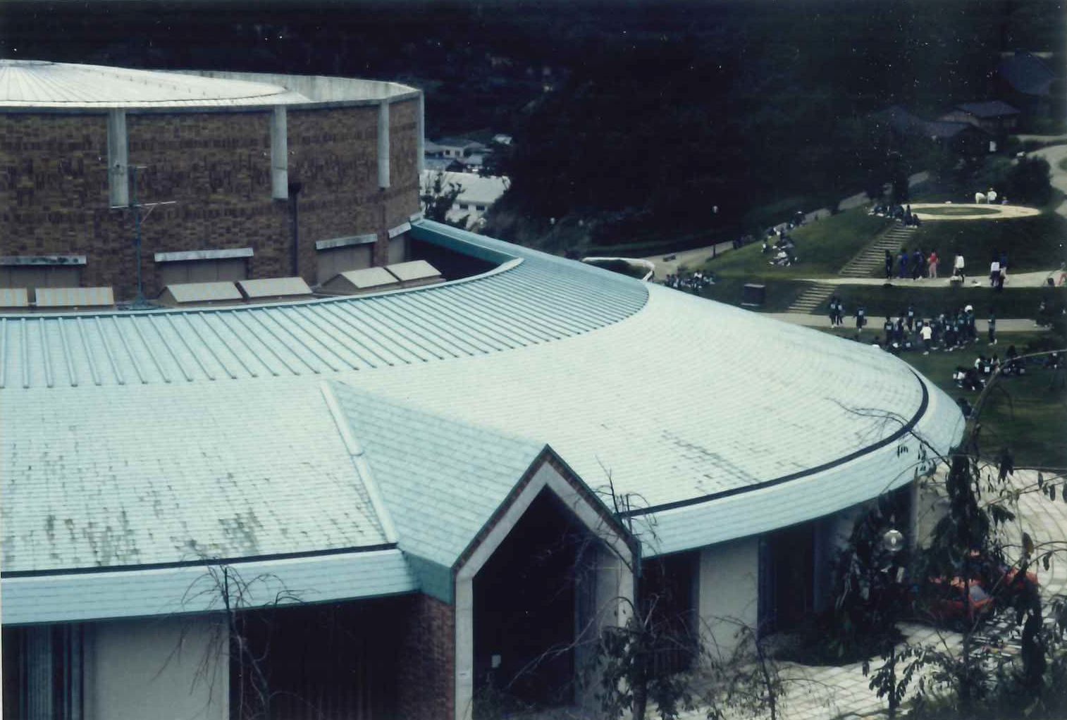 1990年ごろに完成した滋賀県 陶芸の森にある信楽産業展示館。弊社が屋根工事をさせていただきました。