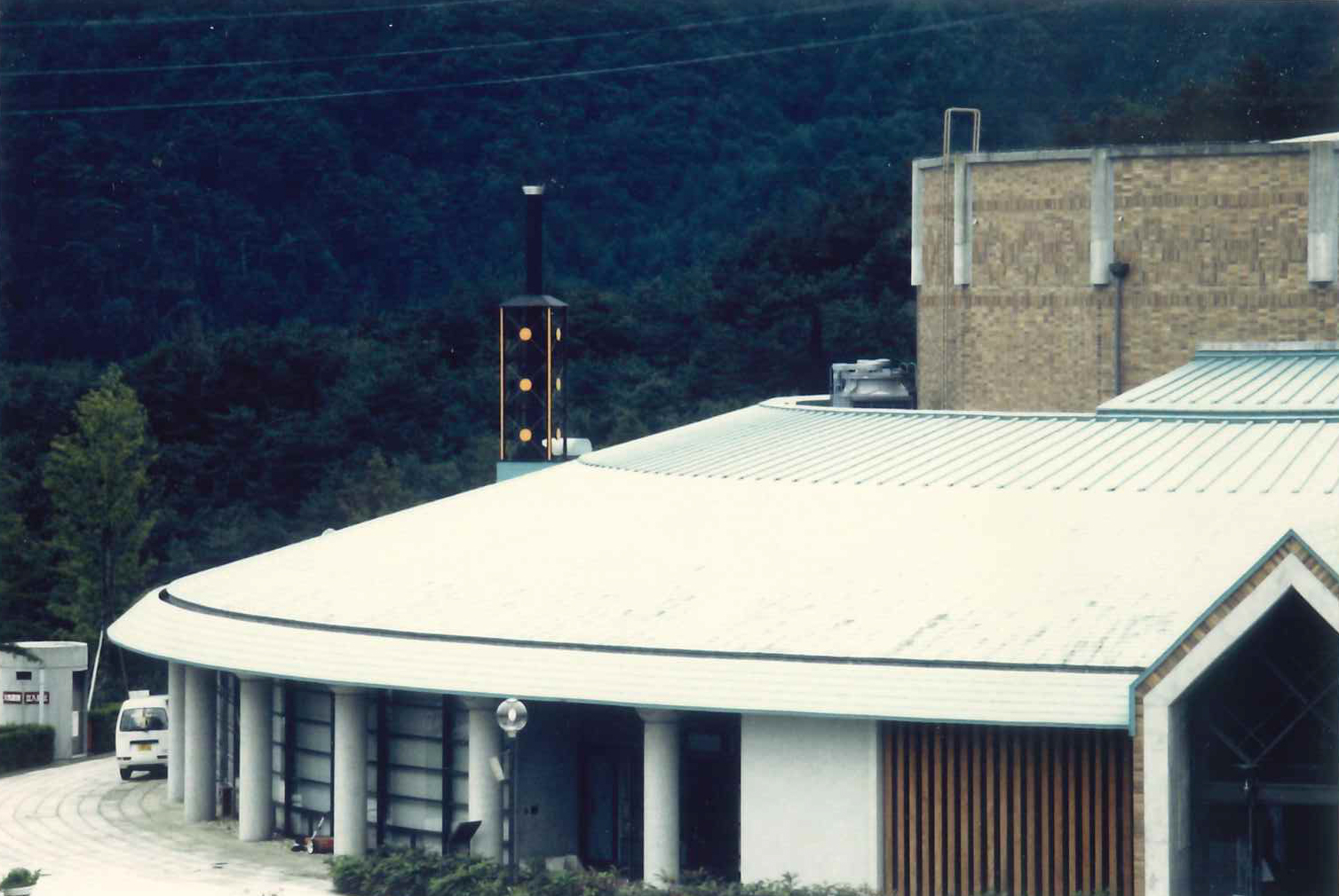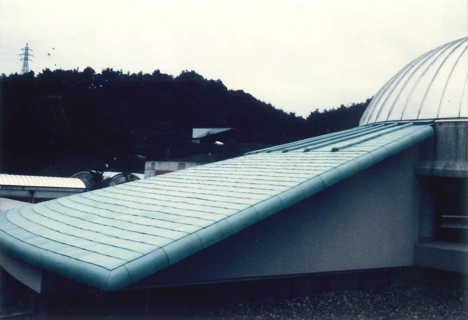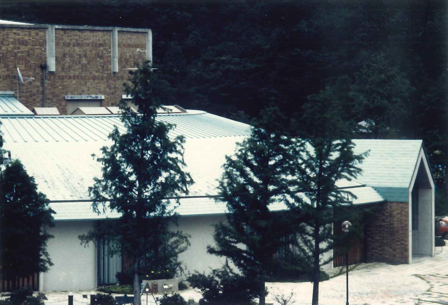 1990年ごろに完成した滋賀県 陶芸の森にある信楽産業展示館。弊社が屋根工事をさせていただきました。