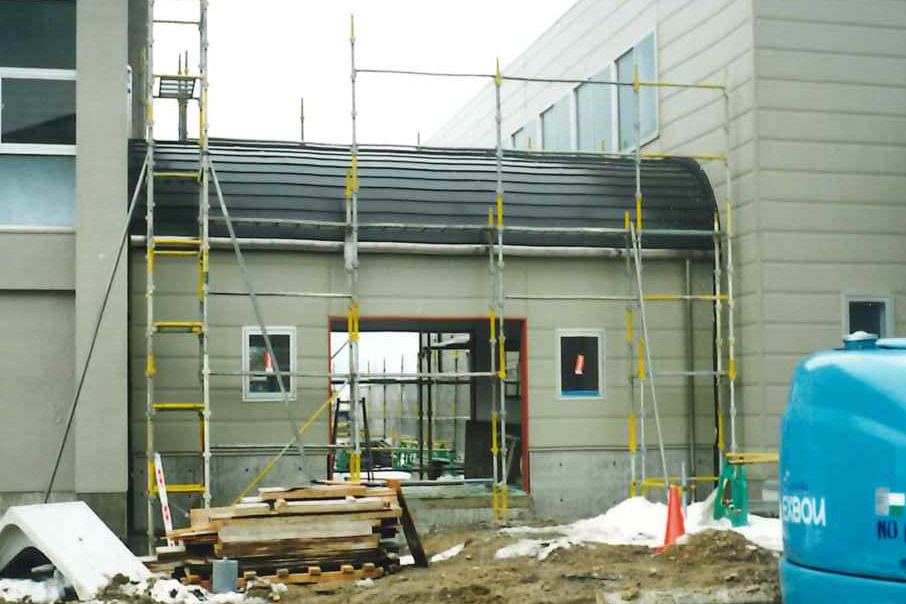 敦賀市内施設 1980年1月1日 2026年3月16日 施工実績 PrevNext 敦賀市内にある施設の渡り廊下の屋根工事をさせていただきました。 外壁との取り合い部分も美しく納まっています。 小さい屋根ですが、職人の技術がつまっています。