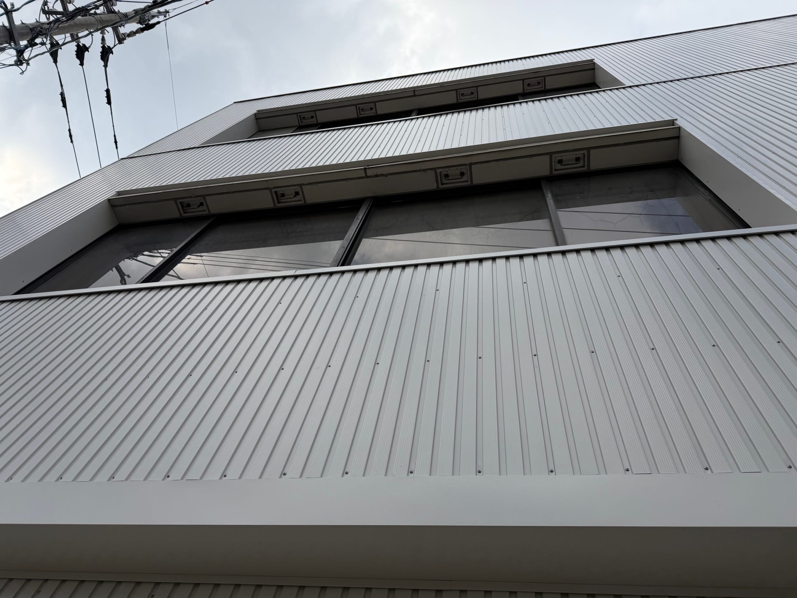 仕上げにはスタイリッシュな角波(かくなみ)を施工。機能面、安全面ともに大幅にアップデートされた建物へと生まれ変わりました。